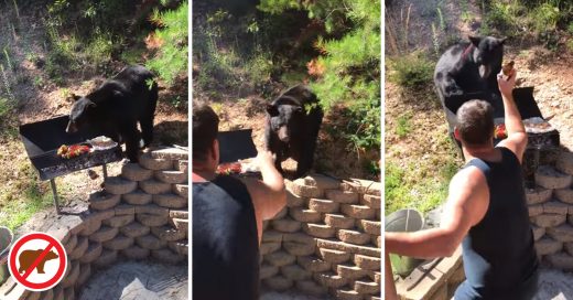 Oso se cuela a una parrillada e intenta robarse la carne; genio le avienta cerveza para ahuyentarlo