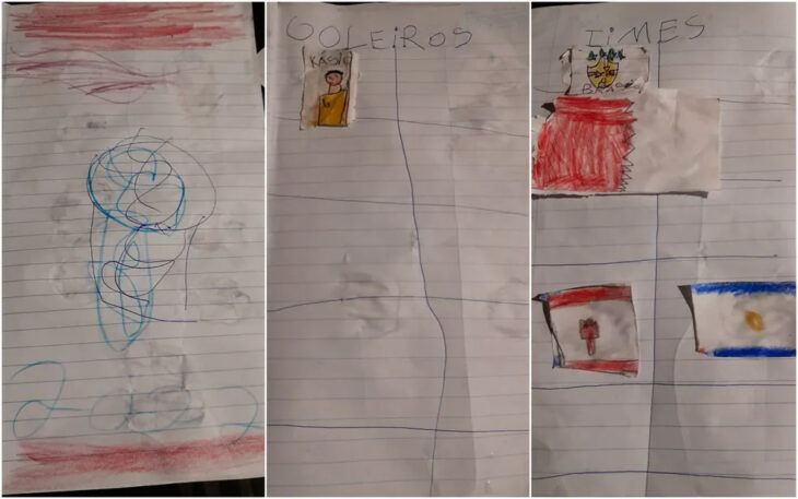 Solo bastaron colores, tijeras y mucha creatividad para que João Gabriel hiciera su propio álbum. En otra situación, según João Teixeira, le hubiera costado al padre más de la mitad de los ingresos mensuales de la familia. El gasto no era permisible para la situación del hogar, por lo que no pudo evitar emocionarse cuando vio el empeño que su pequeño había hecho para cumplir su sueño futbolero.