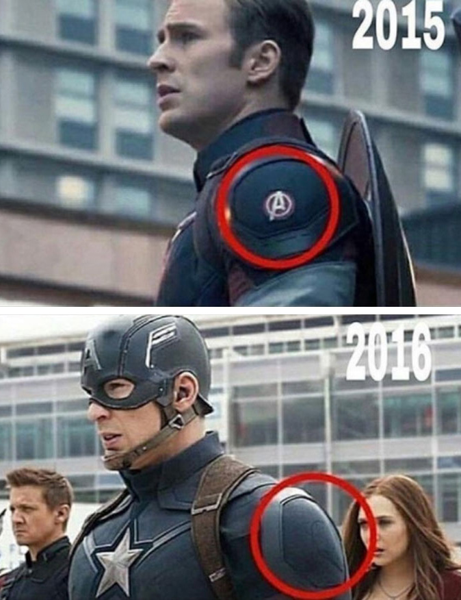 Steve Rogers se separa de los Avengers cuando le piden que firme los Acuerdos de Sokovia. El “Cap” no estuvo de acuerdo con que el gobierno regule a los Avengers y esto inició la guerra civil entre héroes. En la escena de batalla del aeropuerto se nota que el traje de Steve ya no tiene el parche con la insignia de los Avengers en el hombro.