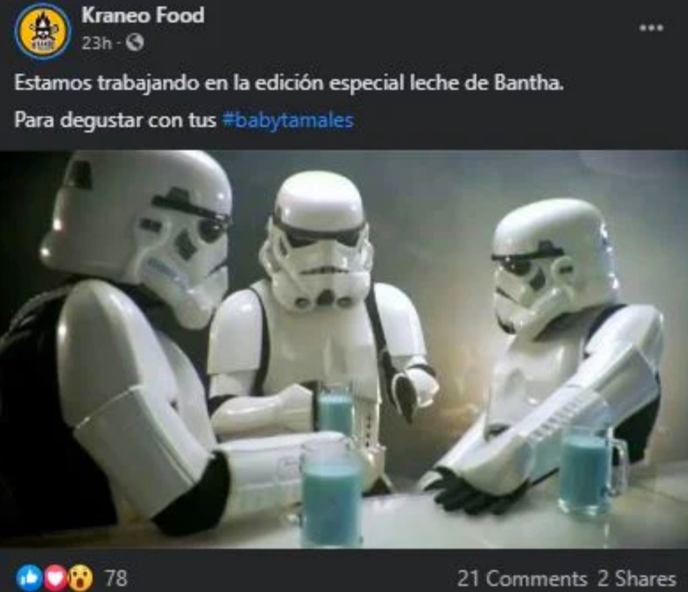 Aunque todavía no hay más datos, este local ya anunció que están trabajando en una leche de Bantha, color azul, para que puedas acompañar de mejor manera tus tamales verdes y sentirte como si estuvieras en una cena de Star Wars, pero con un toque muy tradicional y mexicano.