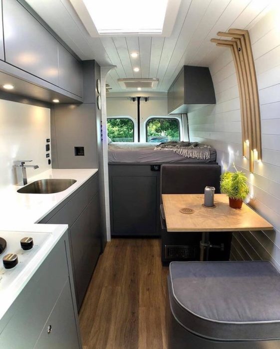 Las ‘vans’ blancas tienen un gran tamaño: puedes colocar todo lo que necesitas en ellas. El hecho de que sean esencialmente furgonetas de constructores significa que son bastante sigilosas. Por dentro es hermosa, es una casa sobre ruedas.