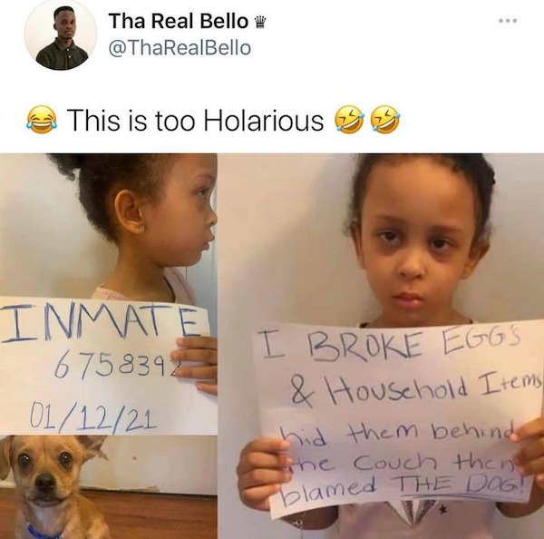 “Presa… Quebré los huevos y algunos artículos de la casa, las escondi detrás del sofá y luego culpé al perro”.