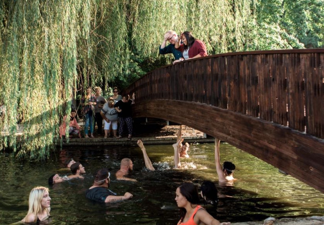 Probablemente tuvimos a 25 personas ahí. Quizá 12 en el agua en el mismo momento. Dijo la fotógrafa de bodas de la pareja, Stacy Dabnery.