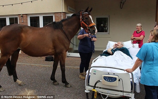 A sus 88 años de edad, ya internado en un hospital, Patrick tenía un último sueño antes de morir: poder convivir con esos animales que desde la juventud lo habían acompañado; así que los enfermeros y personal del Hospicio de North Devon (Inglaterra) no dudaron en cumplir esta petición.