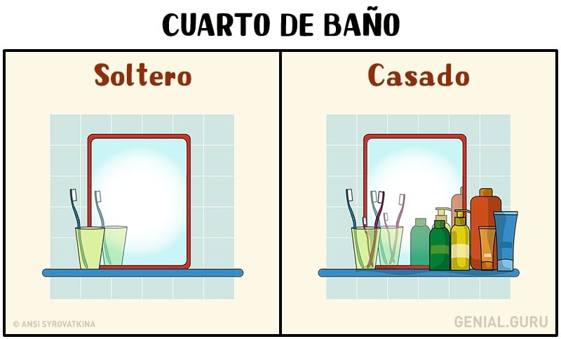 Para que recuerdes con nostalgia esos momentos en que eras soltero, o si todavía lo eres, para que veas lo que te espera cuando te cases, aquí te dejamos 10 ilustraciones que muestran las diferencias entre la vida del soltero y del casado…