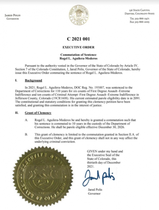 Ahora que su sentencia se ha reducido, Polis informó que Mederos puede ser elegible para libertad condicional dentro de cinco años. Los abogados de Mederos han aplaudido la resolución del gobernador, pues dicen que no defendían que Rogel fuera inocente, sino que solamente pedían que se le diera una condena justa de acuerdo con las atenuantes del caso.