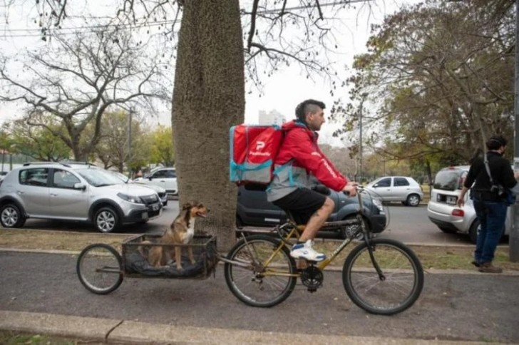 Cuando este hombre encontró a Fredy, este estaba lleno de pulgas y en malas condiciones, pero con los cuidados y cariño de Alejandro muy pronto se adaptó a su nueva vida. Sin embargo, el repartidor no quería dejar solo a su compañero mientras él salía a trabajar, por lo que adaptó un remolque a su bicicleta para ir a todas partes juntos.