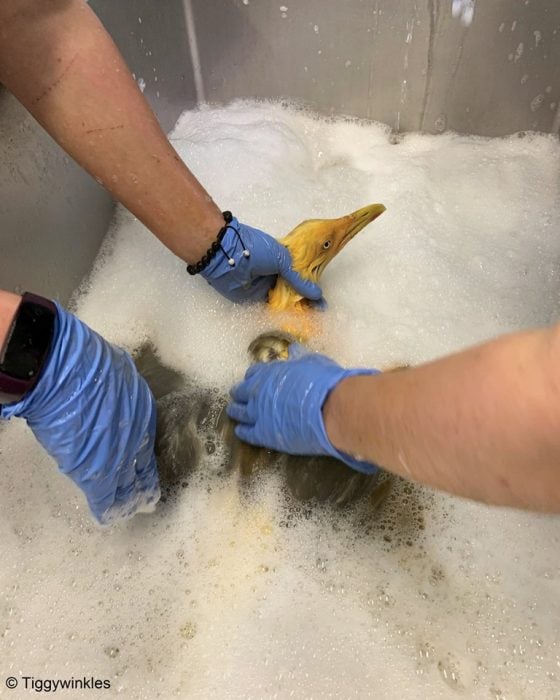 Entonces le dieron un baño para examinarla y ver por qué no podía volar. En ese momento descubrieron que solo era una gaviota común y corriente que estaba cubierta de curry.