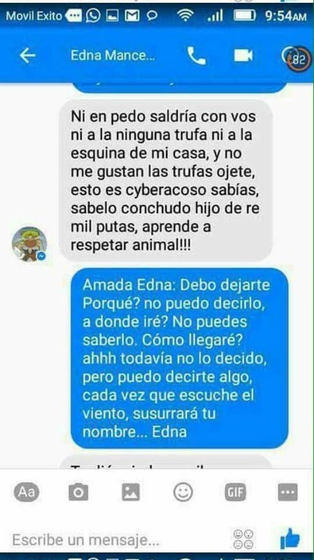 Edna, la víctima en este caso, desconocía por completo de qué hablaba aquel hombre, quien le enviaba mensajes de amor, entre una mezcla de poesía y sarcasmo.