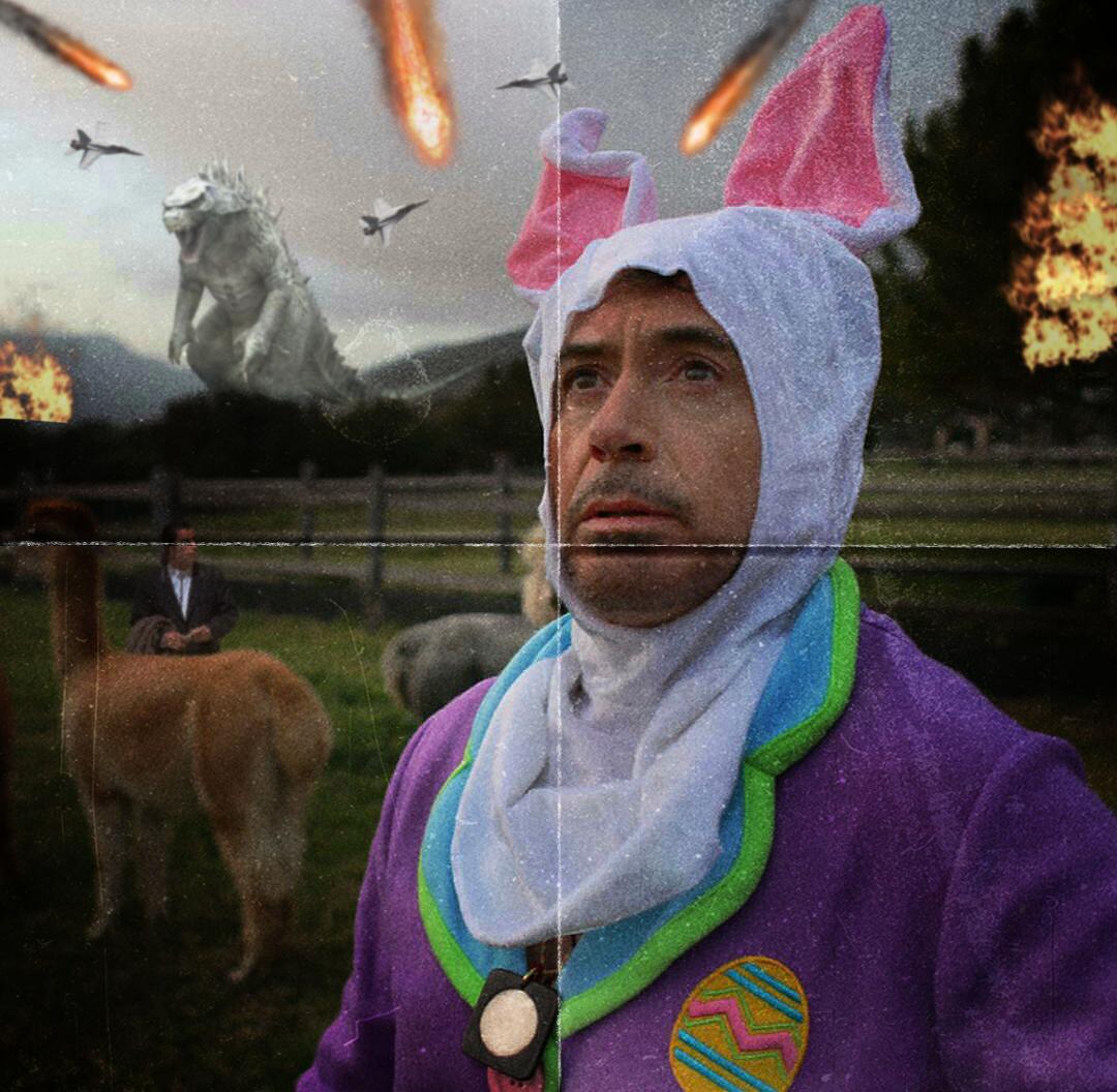 El famoso Iron Man, ahora mejor conocido como Robert Downey Jr (o viceversa) aparición en un video disfrazado de conejo de Pascua; y aunque es una aparición bastante excéntrica, tiene un fin bastante noble .
