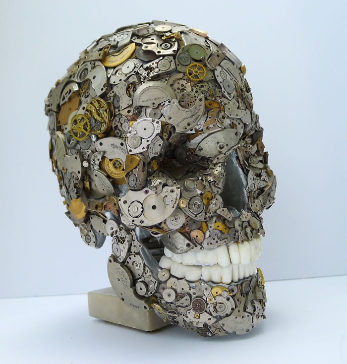 El tiempo pone todo en su lugar, y lo que eran simples desperdicios metálicos de relojes se convirtieron en piezas de arte gracias a este artista.