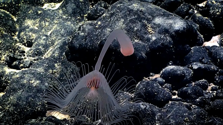Parece una esponja de baño, con tallos que cubren toda su superficie, casi similar a un diente de león. Estas esponjas, también conocidas como hexactinélidos, tienen esqueletos hechos de sílice, el mismo material que se usa para fabricar vidrio.