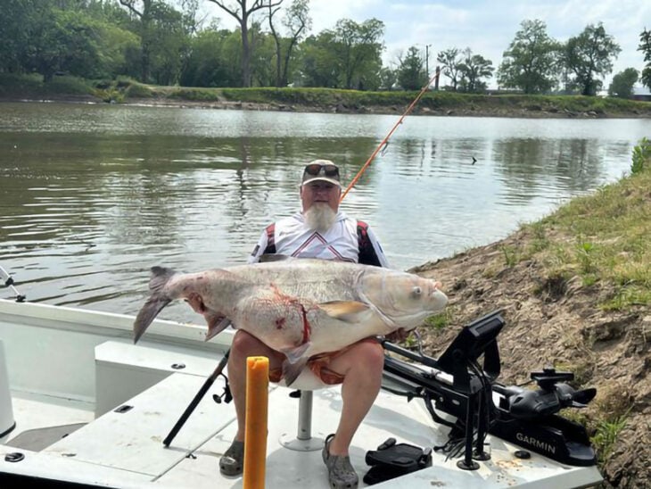 Bryan Baker, de 50 años, se encontraba en una excursión sobre su bote en el Grand Lake o’ The Cherokees, en Oklahoma, cuando el poderoso pez le arrebató la línea de pesca. Se trataba de una carpa cabezona exótica. El hombre sabía que no se trataba de uno de los peces que regularmente atrapaba en el lago, sino de algo realmente “monstruoso”.