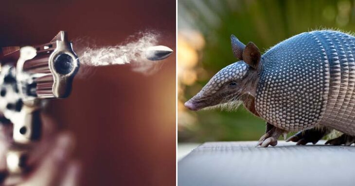 Un hombre en Texas vio que uno de estos curiosos animalillos estaba deambulando afuera de su casa, por lo que tomó su pistola para dispararle al mamífero. Sin embargo, este animal no estaba indefenso. Las tres balas que le dispararon rebotaron en su caparazón y lesionaron la cara del pistolero. Este hombre anónimo tuvo que ir al hospital para ser atendido por las heridas que técnicamente él se provocó.