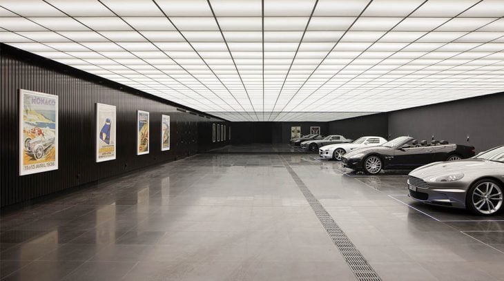 Esta “baticochera” está conectada a la casa a través de una escalera construida especialmente para este fin, por donde los miembros de la familia seguro bajan por sus coches, sintiéndose Batman…