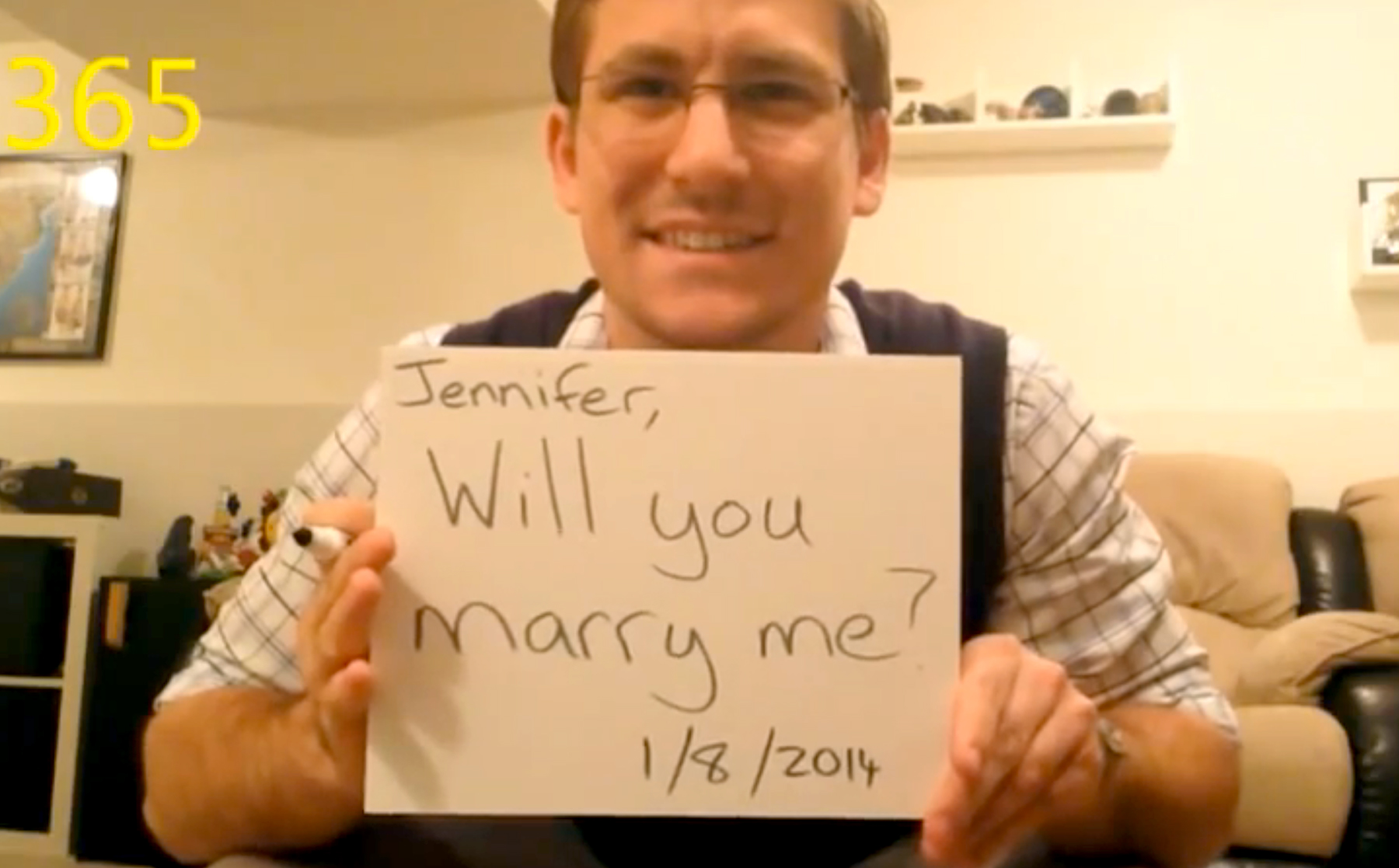 365 propuestas de matrimonio que incluyeron a toda la familia de Jennifer y que se dieron a conocer el día su cumpleaños; sin embargo, el video ya había comenzado a grabarse desde su cumpleaños pasado. Un plan bastante bien elaborado que incluyó no sólo una gran edición de video sino mucha paciencia.