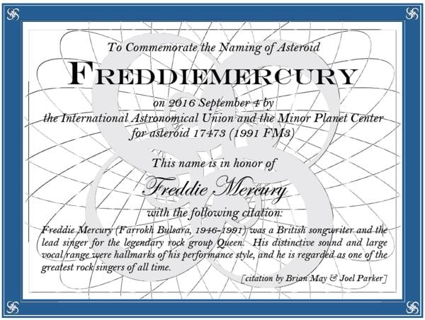 La Unión Internacional dio a conocer que el asteroide se llamó en un inicio “1991 FM3”, y que en parte por ello se eligió este asteroide, pues coincide con las iniciales de Mercury. Siendo uno de los mejores cantantes de rock de la historia, el homenaje hará recordarlo a mucha gente: