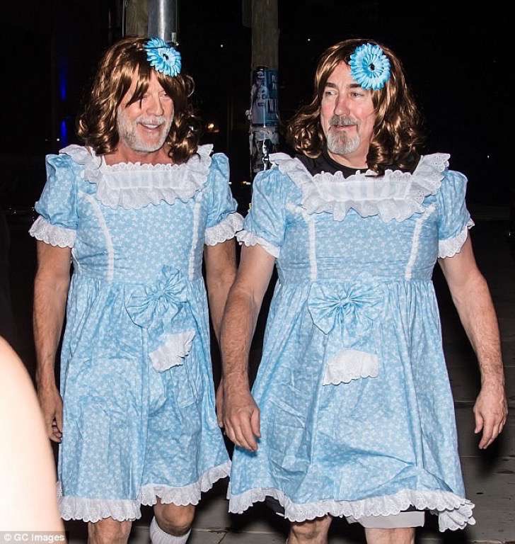 Todo el mundo quería verlos tomados de la mano como las gemelas de la película -eso le hubiera dado un toque de realismo a su disfraz-. Bruce Willis, de 62 años es considerado uno de los íconos de películas de machos alfa, así que no tuvo miedo de ponerse las calcetas y la falda.