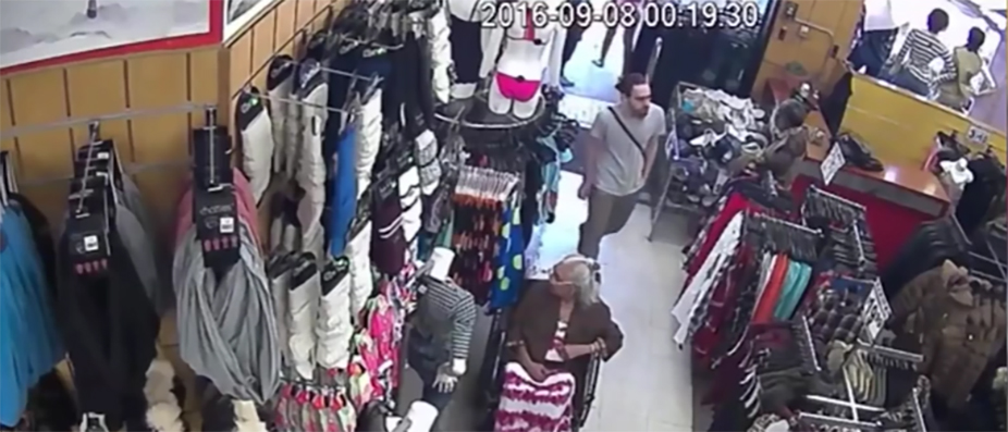 María Vásquez se encontraba en los almacenes Regines en Nueva York, en su silla de ruedas, cuando las cámaras de seguridad muestran a un hombre acercándose lentamente a ella, quien acababa de cobrar los 600 dólares de su pensión, y pensaba comprarse unos zapatos nuevos.