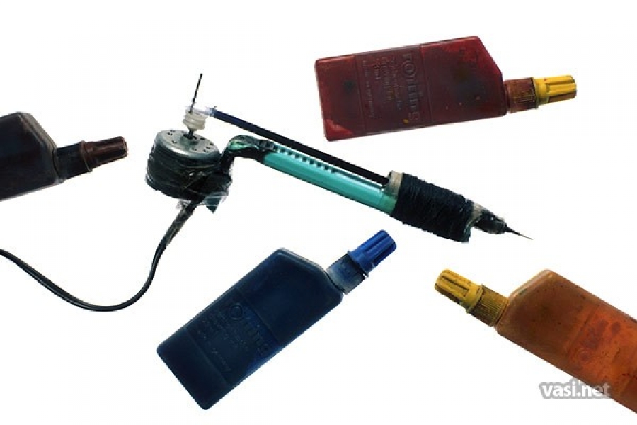 Hecha de un mango de cepillo de dientes, un bolígrafo y un motor eléctrico. Las máquinas para tatuar son una fuente popular y común de los ingresos entre los reclusos, pero son consideradas como “objetos ilegales” debido al peligro de infección (sida, hepatitis, etc.).