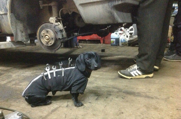 Recientemente ha surgido un perrito salchicha que trabaja en un taller mecánico en ese país y de inmediato se ha vuelto viral por su actitud de servicio y responsabilidad, convirtiéndose no solo en el mejor amigo de su compañero humano, sino en su mejor ayudante a la hora de arreglar automóviles.