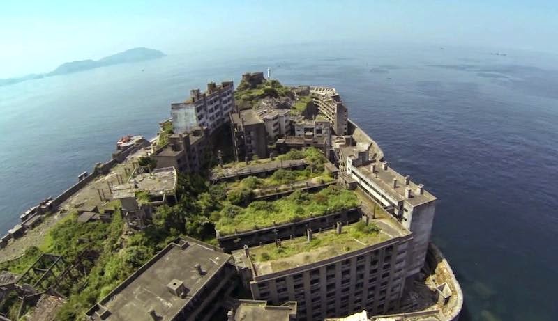 También es llamada Gunkajima (Barco de Guerra) y se trata de una pequeña isla en la que llegaron a vivir hasta 5,000 mineros, lo que la convirtió en su momento en el lugar con mayor densidad de población sobre la Tierra. En 1974 fue abandonada totalmente, pues lo pequeño y la imposibilidad de salir durante periodos prolongados debido a las corrientes del mar hacía muy complicado seguir habitándola.
