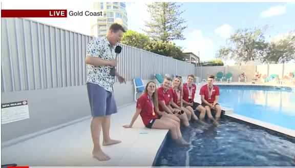 Un reportero que trataba de entrevistar a jóvenes campeones de natación en Inglaterra tuvo un desliz que causó que los entrevistados no dejaran de reír por un buen rato y que para poder contestar a sus preguntas escogieran mejor desviar la mirada.