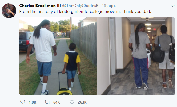 Un joven agradecido con su padre tuiteó dos fotos: una cuando su padre lo llevó por primera vez al kinder y otra el día que lo acompañó a su primer día en la universidad. Internet se puso emotivo y lo volvió famoso.