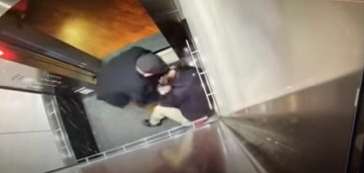 Las cámaras de seguridad captaron el momento en que un abuelo, una mujer y un joven estaban en un elevador. Todo iba tranquilo hasta que llegaron a un piso y un hombre insistió en subir.