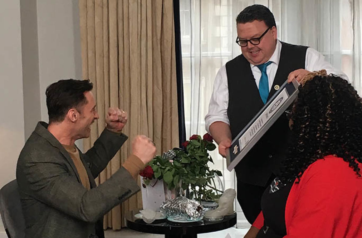 Jackman ha ganado un Emmy, un Tony y un Grammy, pero pocos se pueden preciar de tener un Récord Guinness, por lo que el actor recibió esta sorpresa, visiblemente emocionado:
