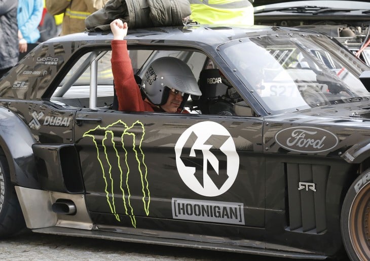 Sin embargo, los invitados de la boda y turistas observaron asombrados al piloto de rally Ken Block cuando hacía giros en la famosa plaza del centro de Londres, con Le Blanc sentado en el asiento de copiloto.