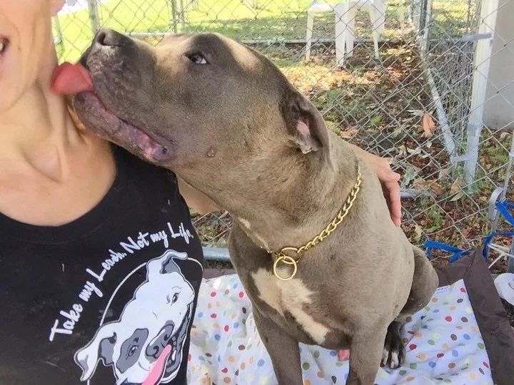 Desafortunadamente aún existen lugares en donde se organizan peleas clandestinas entre canes y los entrenan para combatir entre ellos. Por fortuna, este pitbull fue rescatado de esa violenta vida y del maltrato, y le dieron refugio en un albergue para animales en San Bernardino, California.